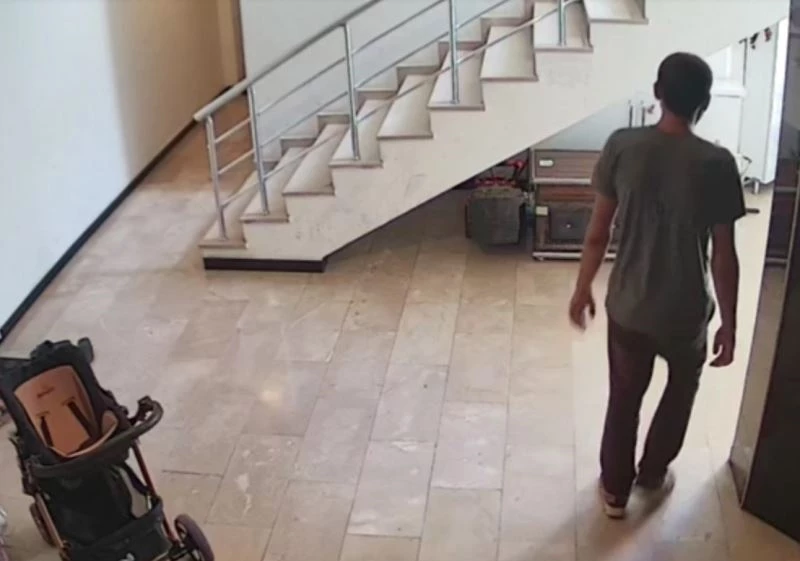 Motosiklet hırsızlığının ardından bir apartmanda güvenlik kamerasına yakalanan hırsızlık zanlısının, binaya girdikten sonra köşe bucak çalacak bir şey aradığı, bulamayınca da çıkarken uzatma kablosunu aldığı anlar güvenlik kameraları tarafından kaydedildi.