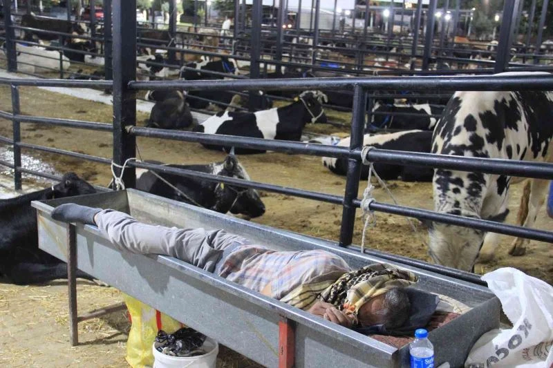 Aydın’da geçtiğimiz yıllara oranla daha az sayıda hayvanın geldiği kurbanlık pazarında gece manzaraları çobanların zorlu hayat mücadelelerini gözler önüne seriyor. Hırsızlık riskine karşı hayvanların başında yatıp kalkan çobanlar kendi aralarında geceleri nöbetleşe uyuyor. Birçoğu hayvanların başında saman balyalarının üzerine yatıp kalkan çobanlardan Mehmet Koyun, “Umudumuz son güne kaldı. Önceki yıllara göre kurbanlık satışı düşük. Fiyatlar aslında makul ve normal ama alım gücü düşük bence” diye konuştu.