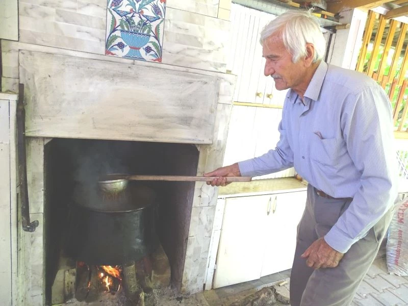 Kış aylarında yaygın olarak tüketilen katkısız ve organik üzüm pekmezi imalatının emek isteyen ve uzun uğraş gerektiren çok zahmetli bir iş olduğuna değinen emekli işçi Hasan Soyugür, üzüm pekmezini nasıl ürettiklerini anlattı.
