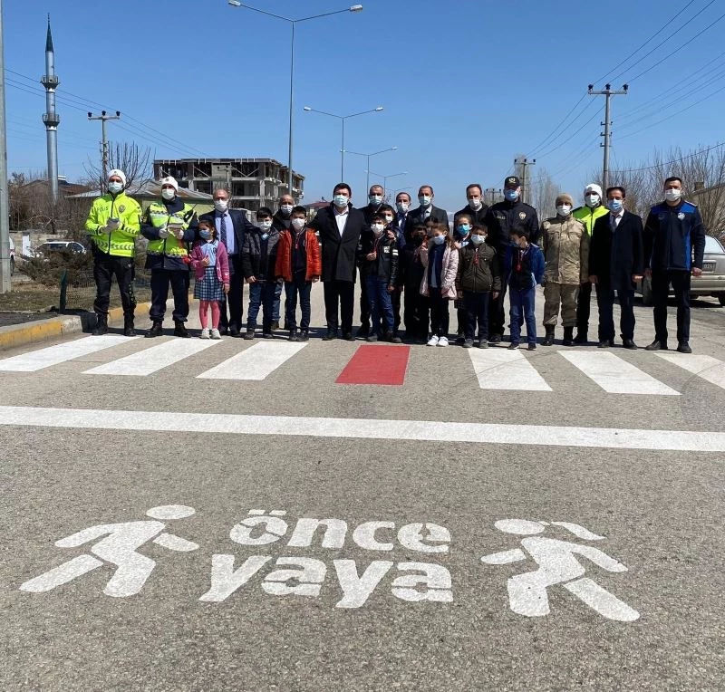 Horasan’da yaya geçitlerinde ’Kırmızı çizgi’ etkinliği