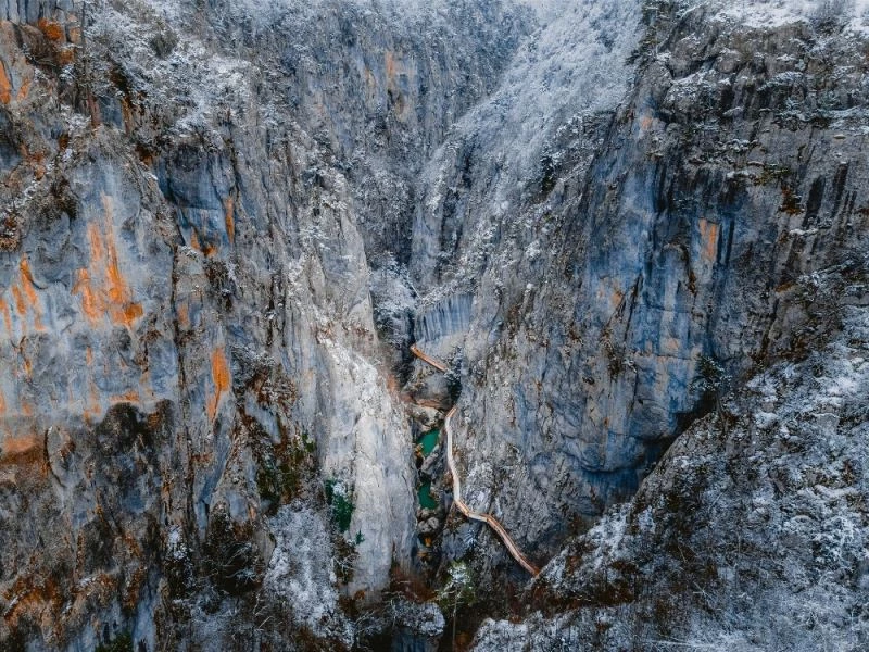 Kayalara çivilerle monte edilen 3 kilometrelik ahşap platformu ile maceraseverlerin uğrak noktası haline gelen Horma Kanyonu, kar altında ziyaretçilerine eşsiz güzellikler sunuyor.