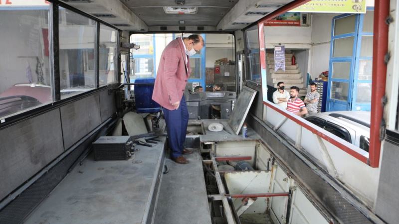 Kaymakam Muammer Köken de hem otobüsteki çalismalari inceledi hem de tulum giyerek otobüsün tasarlanmasina yardim etti.