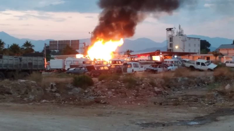 Antalya’da hurda araçların bulunduğu alanda çıkan yangında 4 araç alev alev yandı. Yangın diğer araçlara sıçramadan söndürüldü.