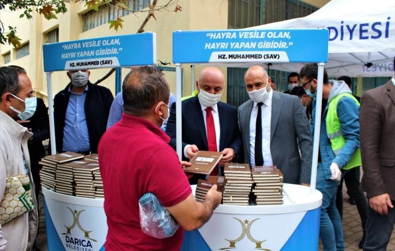 Fransa’nın Hz. Muhammed (Sallallahü aleyhi ve sellem) ve İslam’ı hedef alan saldırgan tutumu ve hakaretlerine karşı, Kocaeli’nin Darıca ilçesinde Cuma namazı çıkışı vatandaşlara Hz. Muhammed (Sallallahü aleyhi ve sellem)’in hayatını anlatan kitaplar dağıtıldı.