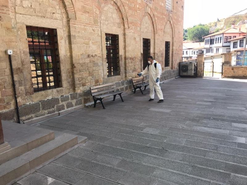 Ankara’nın Beypazarı Belediyesi ibadethanelerde ilaçlama ve dezenfekte çalışmalarını gerçekleştiriyor.