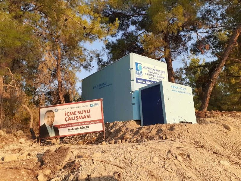 Antalya Büyükşehir Belediyesi, yaz aylarında içme suyu sıkıntısı yaşayan kırsal mahallelerde sorunun hızlı çözümü için portatif depo uygulaması başlattı.