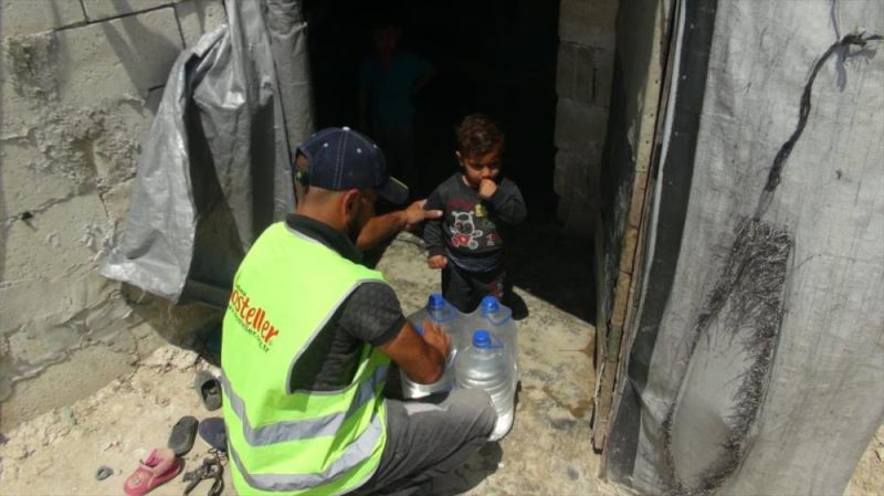 Yardımların Türkiye sınırı karşısında çadırlarda kalan ailelere dağıtılacağı öğrenildi.