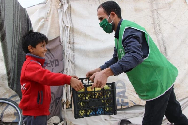 Türkiye'deki hayirseverlerin bagisinin Suriye'de dagitildigini kaydeden Tunç, "Kis sartlarinin agirlasmasiyla bölgede yasam gittikçe zorlasiyor. Anadolu'dan Suriye'ye gönderilen 470 ton sebze ve meyveyi, Afrin ve Idlib'de, basta mülteci kamplarinda kalanlar olmak üzere, bölgedeki sivillere ulastirdik." dedi.