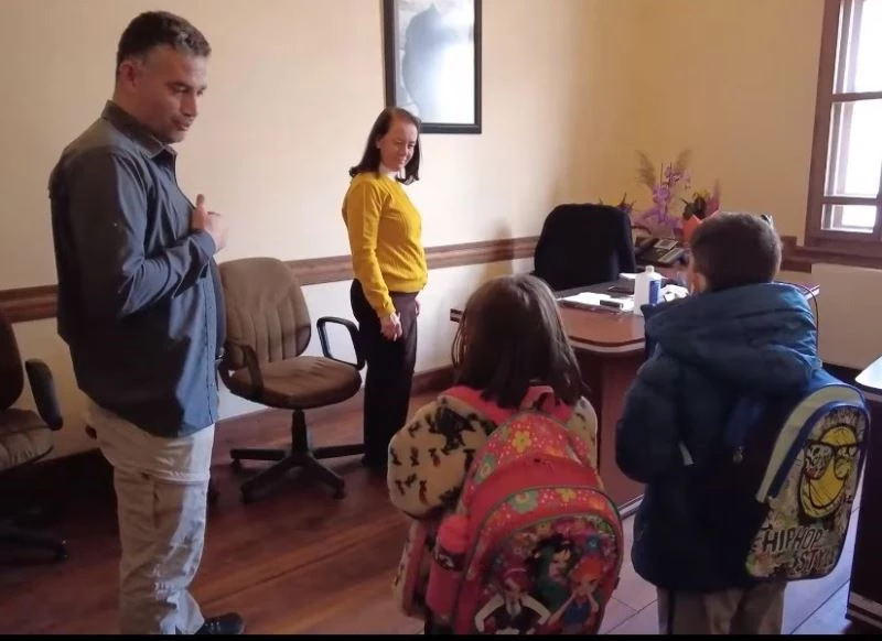 Bilecik Atatürk İlköğretim Okulu’ndan eğitim gören iki meraklı minik, okul çıkışı evlerine giderken önünden geçtikleri valilik binasına çat kapı girdiler. Minikler, merak ettiklerini anlattıkları Vali Dr. Kemal Kızılkaya’nın bir toplantıda olduğunu öğrenince üzüldü. Ardından Valilik Özel Büro personeli Burhan Karaoğlu çocukları alarak odaları gezdirdi. Ardından valilik makam aracına binen çocukların sevinçleri yüzlerini yansıdı.
