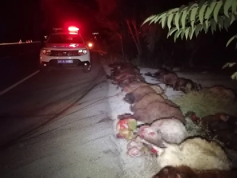 Erzurum’un Oltu ilçesinde iki otomobilin koyun sürüsüne çarpması neticesinde 40 koyun telef oldu.