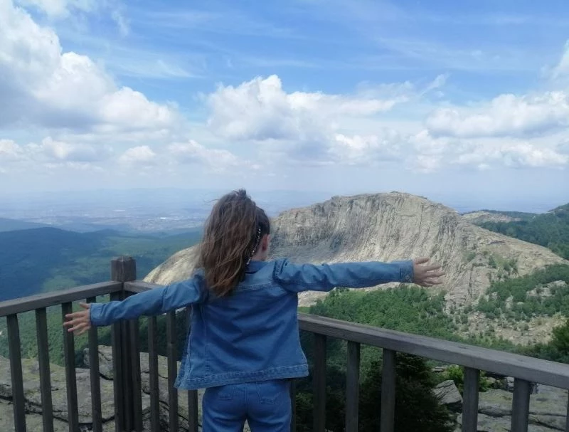 Bursa’nın Mustafakemalpaşa ve Balıkesir’in Kepsut ve Susurluk ilçelerinin sınırında bulunan Çataldağ’daki muhteşem manzarayı görenler hayran kalıyor. 3 ilçenin ve iki ilin sırındaki Çataldağ’a yapılan seyir terası, her yıl çok sayıda kişi tarafından ziyaret ediliyor. Bin 310 metre uçurumun üstünde bulunan seyir terasına çıkan vatandaşlar, 3 ilçenin sınırlarını yüzlerce kilometre izleyebiliyor. Bin 310 metre aşağıdaki uçuruma bakan vatandaşların yükseklik karşında başı dönüyor. Çataldağ’da bulunan manzarayı yerinde gören Yağmur Uslu, 10 yaşında olmasına rağmen eşsiz manzarayı herkese anlattı. Buranın ismini duyup geldiklerini ifade eden Yağmur Uslu, "Burası 3 ilçenin sınırında olan bir yer. Balıkesir ve Bursa sınırı buradan geçiyor. Seyir terası bin 310 metrelik uçurumun üstünde. İnsanın başı dönüyor. Burası mutlaka ziyaret edilmeli. Muhteşem manzarası var" dedi.