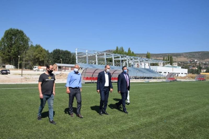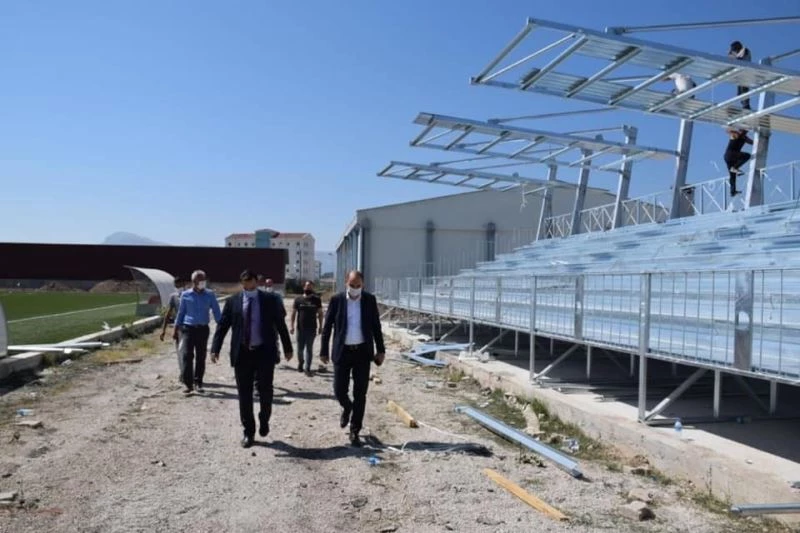İl Müdürü Özdemir, tribün ve atletizm pist inşaatında incelemelerde bulundu
