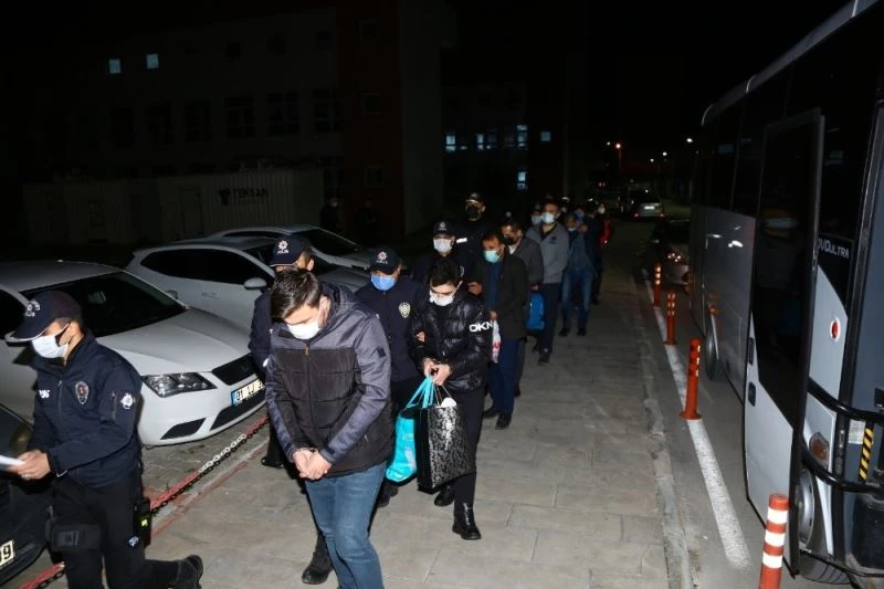 Şüphelilerin adreslerinde, ruhsatsız tabanca, 3 av tüfeği, kuru sıkı tabanca, 223 mermi, 36 bin 240 dolar, 230 avro, 17 bin 950 lira, çok sayıda ilaç, Suriye uyruklu kişilere ait kimlik fotokopileri ile dijital materyaller ele geçirilmişti. Ayrıca, şüphelilerin 12 milyon 523 bin 111 lira haksız kazanç temin ettikleri ileri sürülmüştü. Savcılıkça sorgulanan şüphelilerden 1’i daha serbest bırakıldı, nöbetçi mahkemeye çıkarılan biyologlar İ.E., V.T., doktorlar Z.K., M.D., İ.K., eczacılar M.N.Ö., Ş.E. ve Y.Ç. ile C.E., M.K., N.O., M.Ö., E.Z., İ.S., Y.Ü., A.A., K.E. ve İran uyruklu N.K. tutuklandı. 18 zanlı ise adli kontrol şartıyla tutuksuz yargılanmak üzere serbest bırakılmıştı.