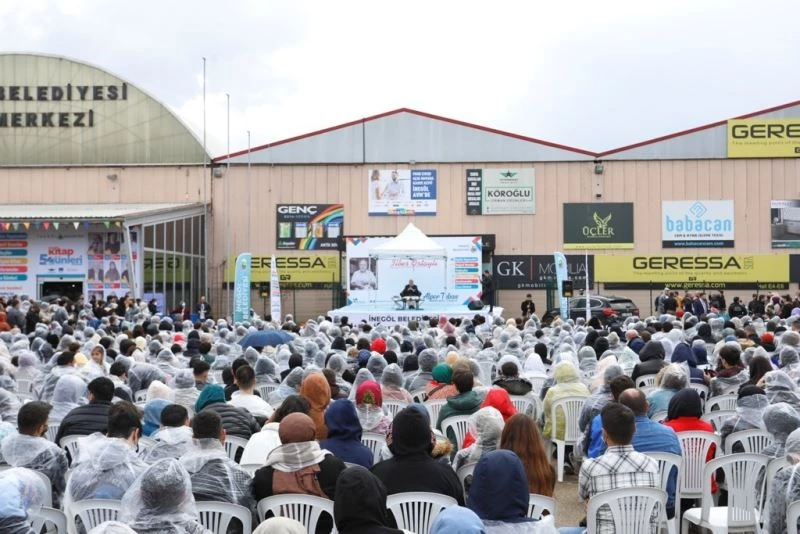 MODEF Fuar alanında gerçekleştirilen Kitap Günleri Fuarında çok sayıda katılımcı ile gerçekleşen söyleşide Prof. Dr. İlber Ortaylı, İnegöl’ün kültürünü, tarihini ve daha önce bu coğrafyada yaşayan medeniyetler hakkında bilgi verdi. 1 saatlik anlatım sırasında yağan yağmura rağmen tüm sandalyeler dolarken, vatandaşlar İlber Ortaylı’yı yağmurluklar ile dinledi. Ortaylı ise Kitap Günleri Fuarına katılmanın mutluluğunu yaşadığını söyledi.