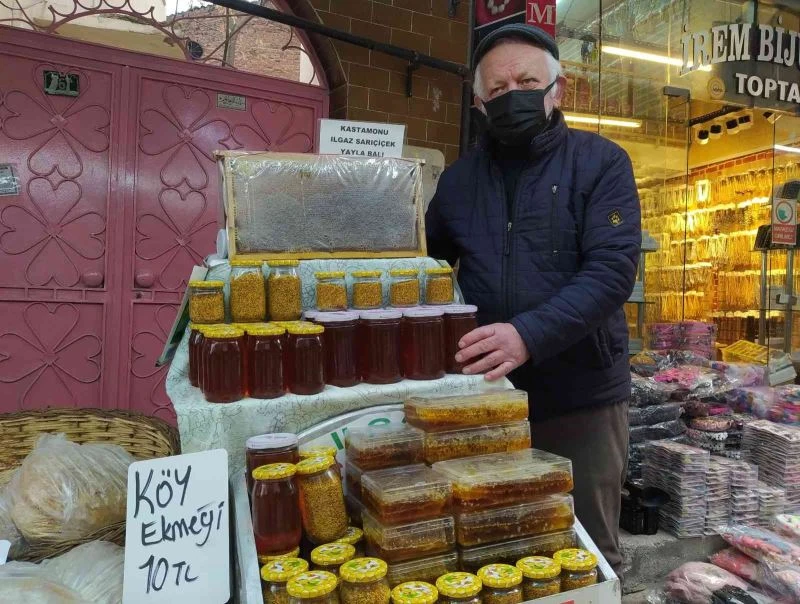 Kastamonu’da arıcılık yapan memur emeklisi Mustafa Özgem, yazın memleketinde ürettiği bal ve polenleri kış aylarında Bursa’da pazarlarda satıyor.