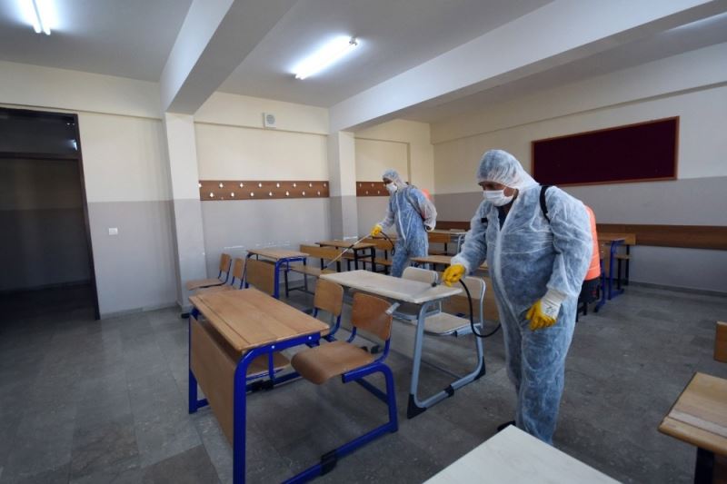 Altındağ Belediyesi ekiplerince gerçekleştirilen dezenfekte ve temizlik çalışmaları ile okullarda sağlıklı ve steril bir ortam oluşturuluyor. Öğrencilerin daha sağlıklı ve hijyenik bir ortamda derse başlamaları için sınıflar, ortak kullanım alanları, koridor ve lavabolar, ekipler tarafından tek tek dezenfekte ediliyor. Yapılan dezenfekte çalışmaları ile, insan sağlığını tehdit edecek olumsuzlukların minimum seviyeye indirilmesi hedefleniyor.