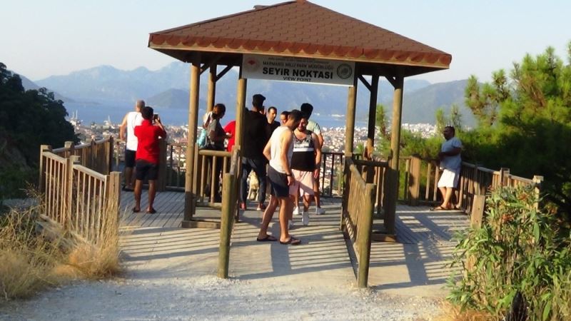 Kurban bayramı tatilinin Turizm göz bebeği olan Marmaris’te geçirmek için mesai bitiminde yola çıkan vatandaşlar saatler sonra ilçeye vardı. Korona virüs (Kovid-19) salgını nedeniyle Ramazan bayramında evlerinde geçiren tatilciler Kurban Bayramını fırsat bilip Muğla’nın turistlik ilçelerine akın etti. Perşembe günü gece yola çıkan bazı vatandaşlar sabah erken saatlerde Marmaris’e vardı. İlçe girişindeki seyir terasını gören tatilciler Bayram sabahında ilk işleri Marmaris’i tepeden gören Milli Park’tan fotoğraf çekerek anı ölümsüzleştirdi.