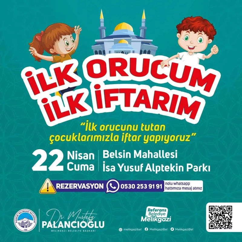 Melikgazi Belediyesi’nin ilkini Altınoluk Mahallesi’nde başlatmış olduğu, “İlk Orucum, İlk İftarım” etkinliği 22 Nisan Cuma günü Belsin’deki İsa Yusuf Alptekin parkında düzenlenecek.