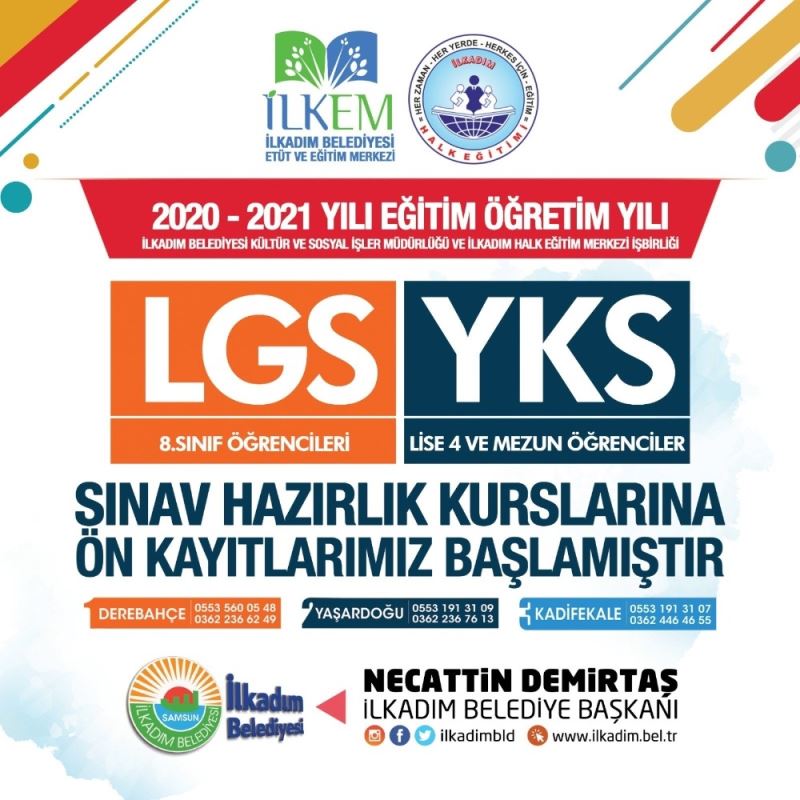Eğitime destek konusunda tüm imkanları gençlerin hizmetine sunduğunu ifade eden İlkadım Belediye Başkanı Necattin Demirtaş, “Geleceğimiz olan gençlerimizin hep yanında olduk. Kurs merkezlerimizdeki farklı branşlarla daha fazla öğrencinin geleceğine katkıda bulunmak istiyoruz. İLKEM Kurs Merkezimiz 2020-2021 eğitim-öğretim yılı öncesinde YKS ve LGS’ye hazırlanan öğrencilerimizin ön kayıt kurs başvurularını almaya başladı. Bu yıl Türkiye geneli derecesi ile hem YKS hem de LGS’de büyük bir başarı yakalayan İLKEM bizlerin ve ilçemizin gurur kaynağı oldu. Kovid-19 virüs salgını ve bilim kurulu açıklamaları doğrultusunda takip edilecek olan son kayıt başvuru tarihi 1 Eylül-14 Eylül itibari ile kurslarımız öğrencilerimize hizmet verecek” diye konuştu.