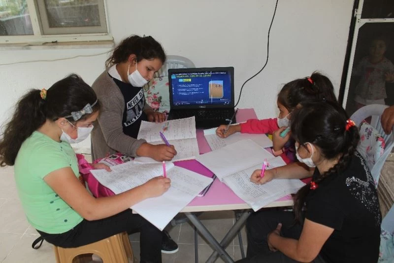 Muğla’nın Ula ilçesi Turgut Mahallesinde cep telefonu şebekelerinin çekmemesi, bu nedenle telefon sinyali olmadığı için internete ulaşamayan yaklaşık 50 öğrenci online eğitime erişmek için köyün interneti olan tek evi olan imamın evinin önünde ders sırasına giriyor.
