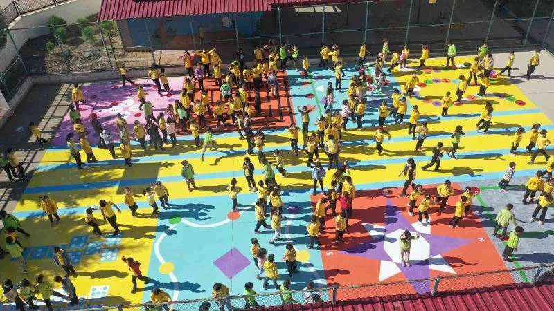 Adana’nın İmamoğlu ilçesinde bazı okulların bahçelerindeki oyun alanları rengarenk boyandı.