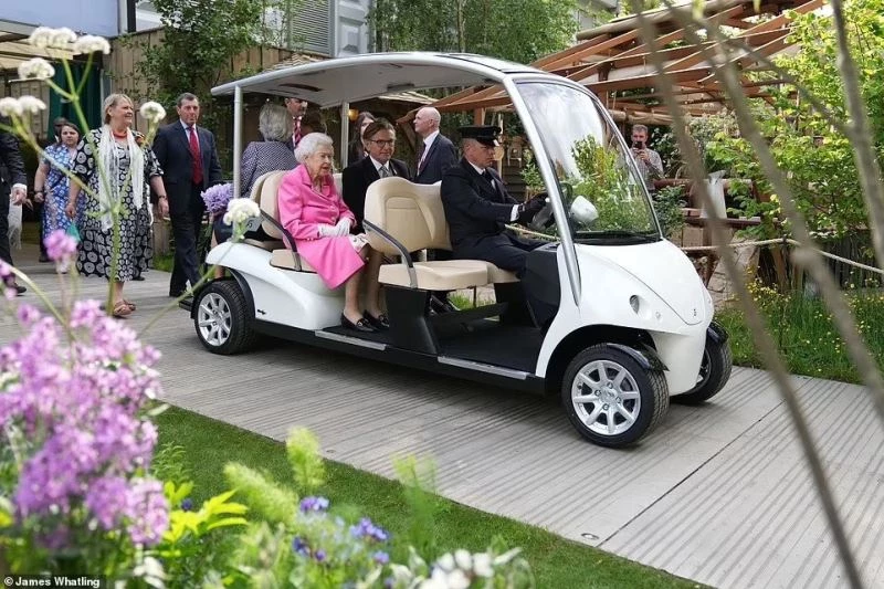 Buggy olarak adlandırılan hafif araba ile çiçek fuarını dolaşan Kraliçe Elizabeth fuardaki yaklaşık 10 farklı bahçeyi gezerken, kraliyet ailesinin diğer üyeleri de fuarı salı günü halka açılışından önce kraliçeyle ziyaret etti.