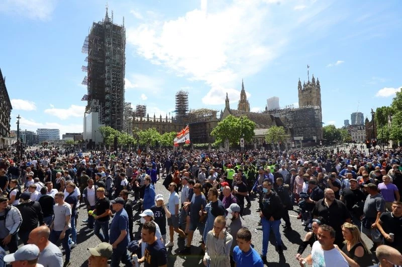 ABD’de siyahi George Floyd’un polis tarafından öldürülmesinin ardından başlayan protestolar İngiltere’nin başkenti Londra’da devam ediyor. İngiltere’de köle tüccarlarının ve siyahi insanlara karşı olumsuz konuşan kişilerin heykellerinin şehir meydanlarında bulunmalarından rahatsızlık duyan protestocular geçtiğimiz haftadan bu yana heykelleri hedef alan gösteriler düzenledi. Geçtiğimiz hafta İngiltere’nin Bristol kentindeki bir köle tacirine ait heykel, göstericiler tarafından devrilip denize atılmış, Londra’da ise bir köle sahibine ait heykel yetkililerce kaldırılmıştı. İngiltere’deki ırkçılık karşıtı protestoların organizatörleri bugün Londra Parlemento meydanınında toplanarak meydanda bulunan Winston Churchill’in heykelin kaldırılmasına yönelik gösterilere başladı. Gösteri organizatörleri heykelin bugün saat 5’e kadar indirilmesine yönelik duyuru yaptı.