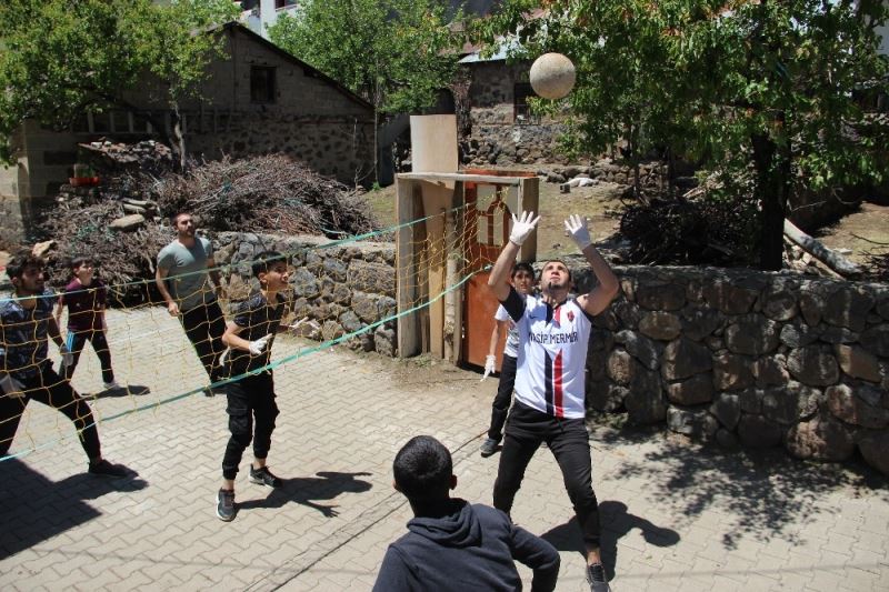 Bingöl’de çocuklar, kendi imkanlarıyla inşaat ipiyle file örüp, futbol topu ile voleybol oynadı.