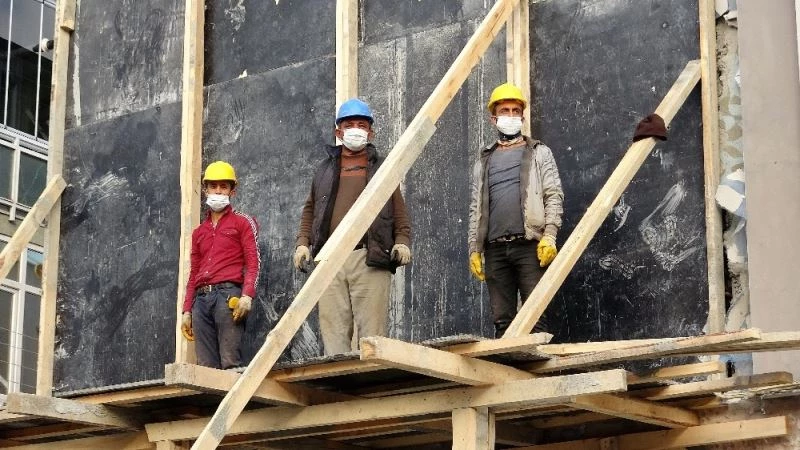 Tokat’ta bir inşaatta çalışan işçiler saat 9’u 5 geçe sirenlerin çalmaya başlamasıyla birlikte Ata için saygı duruşunda bulundu.