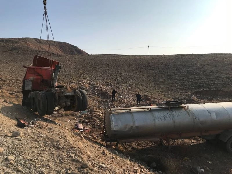Iğdır’ın Tuzluca ilçesinde devrilen İran plakalı yakıt tankerinin sürücüsü öldü.