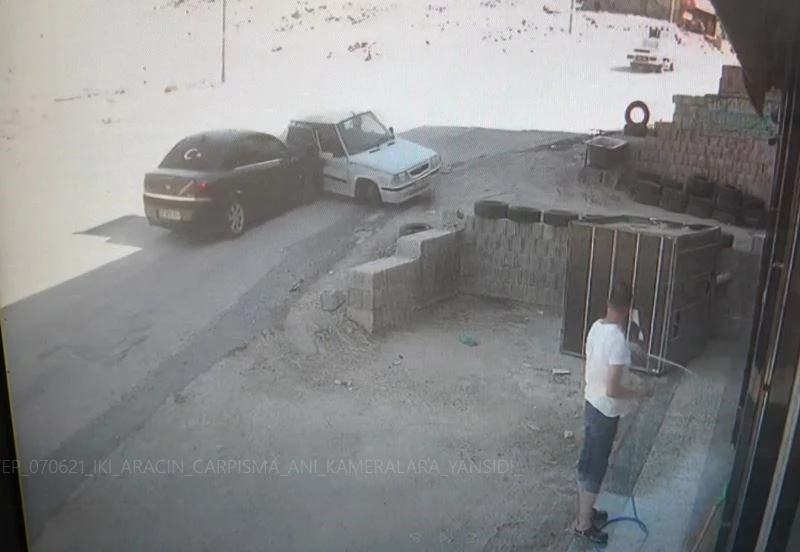 Gaziantep’te iki otomobilin çarpışma anı güvenlik kamerasına yansırken, o esnada dükkanın camını temizleyen bir kişi otomobilin altında kalmaktan kıl payı kurtuldu. O anlar ise bir iş yerinin güvenlik kamerasına saniye saniye yansıdı.
