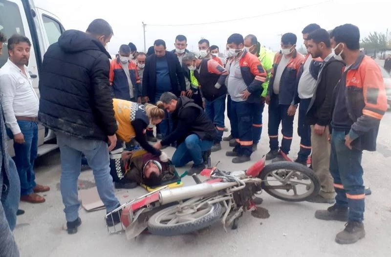 İşçi servisinin çarptığı motosiklet sürücüsü ağır yaralandı