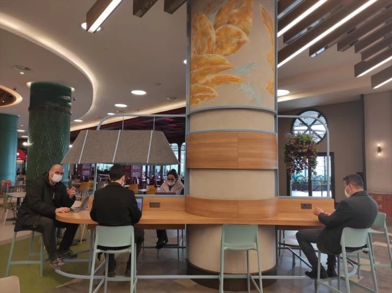 İSTANBUL (AA) - İsfanbul AVM, yeme-içme bölümündeki ortak "workstation" alanıyla uzaktan çalışma imkanı olan misafirlerine farklı bir deneyim sunuyor.