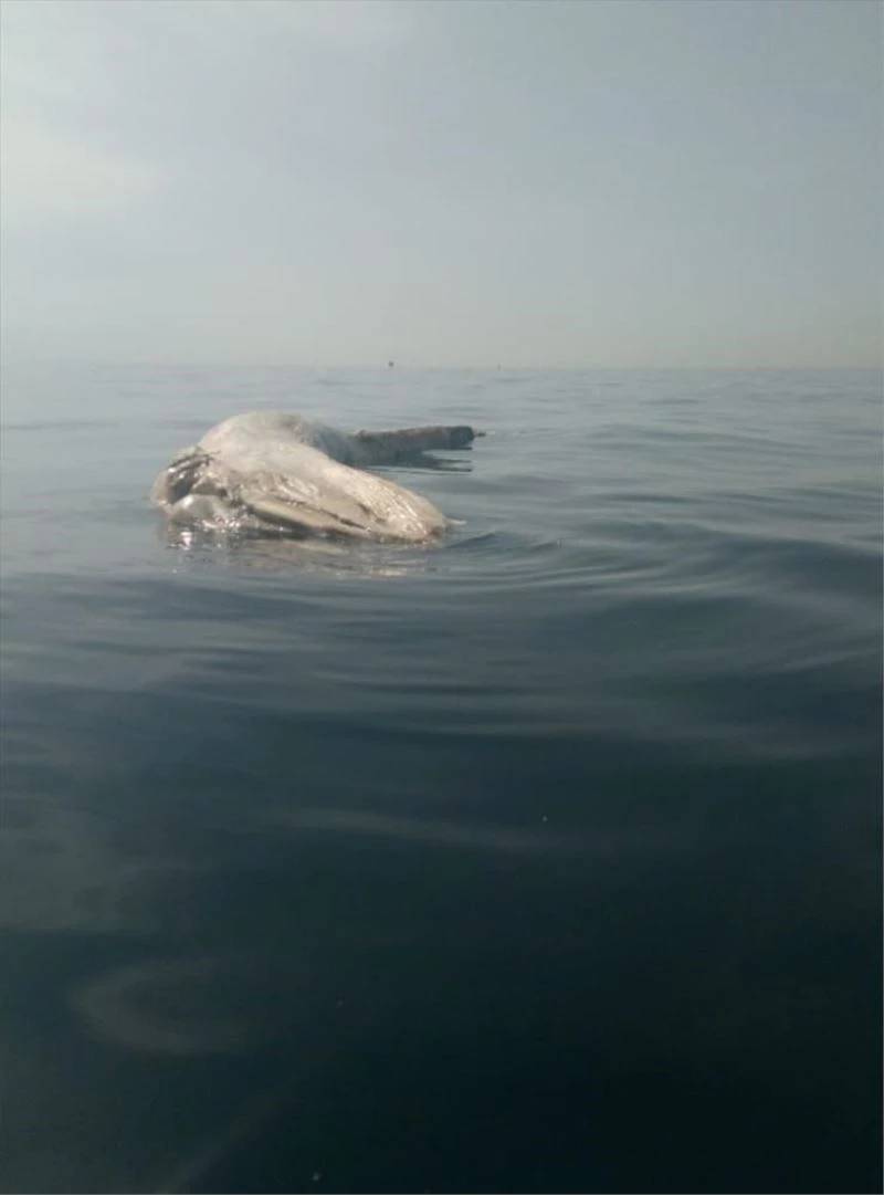 HATAY (AA) - Hatay'ın İskenderun Körfezi'nde ölü balina, amatör balıkçılar tarafından cep telefonu kamerasıyla kaydedildi.