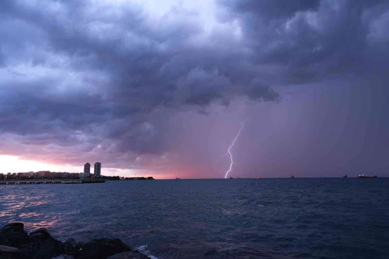 Hatay’da gün batımında İskenderun Körfezi üzerinde çakan şimşekler adeta görsel bir şölen oluşturdu.