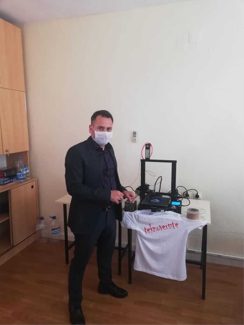 ISTE Dörtyol Meslek Yüksekokulu ögretim üyeleri, Kovid-19 sürecine katki saglamak amaciyla 3D yaziciyla kapi ve pencere kollarina elle dokunmadan açabilme olanagi saglayan aparat tasarladi.