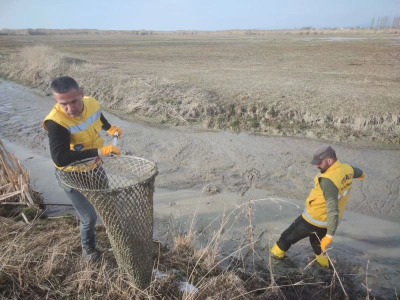 Van’ın İpekyolu Belediyesi Çevre Koruma ve Kontrol Müdürlüğü ekiplerince derede yürütülen ıslah çalışması sırasında onlarca kaplumbağa sulak alana taşındı.