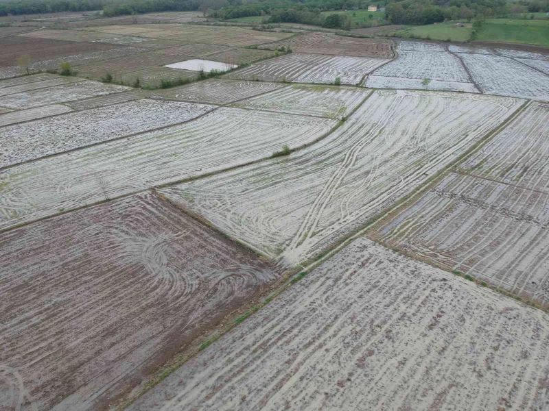 Sabah saatlerinden itibaren tarlalardaki suları boşaltmaya çalıştıklarını dile getiren çiftçi Emrah Ünal, “Dün akşamki yağan yağmur, selden dolayı tarlalarımız baya bir zarar gördü. Bugün sabahtan beri tarla tarla dolaşıp kaşları yarıp suyu boşaltmanın peşindeyiz, tarlamızı kurutmanın peşindeyiz başka türlü bu çeltik buraya ekilmez. Lazer yapılacak, gübre atılacak ilaç atılacak. Bu şekilde bir iş yapılmaz, diyeceklerimiz bu kadar” diye konuştu.