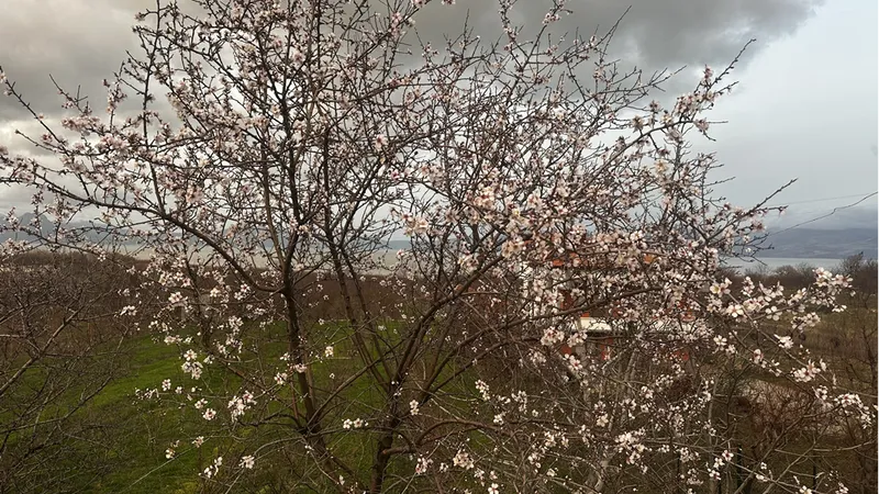 Bölgede güzel görüntüler oluşurken, bazı vatandaşlar çiçek açan badem ağaçlarını cep telefonlarıyla görüntüledi.