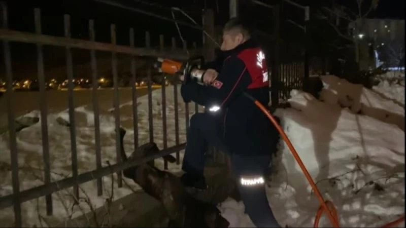 ISPARTA - Isparta'da demir parmaklıklara sıkışan sokak köpeği itfaiye ekiplerince kurtarıldı.