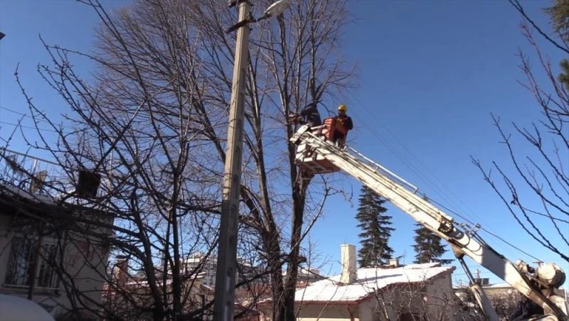 Uzayan ağaç dallarını kesen ekipler, enerji kesintisi olmaması için tellerin ve direklerin çevresini temizledi.