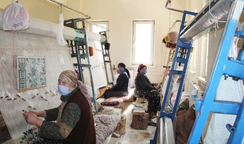 Isparta’da kadınlar halı dokuma ve dekoratif örtü dikiminin inceliklerini öğreniyor