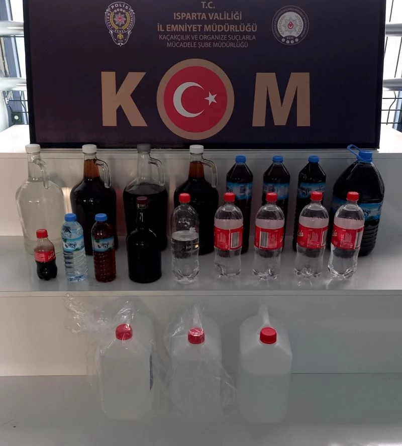 Isparta’da polisin düzenlediği operasyonlarda 2 bin 400 litre karışımlı akaryakıt, 21 litre sahte içki ve 14 litre etil alkol ele geçirildi.
