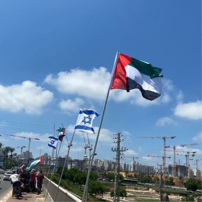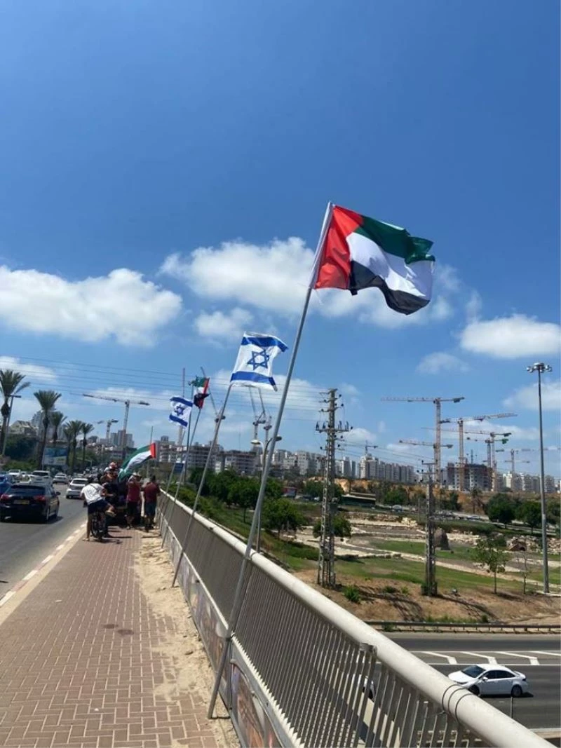 İsrail’in Netanya kentinde Birleşik Arap Emirlikleri (BAE) ve İsrail bayrakları yan yana dalgalandırıldı.