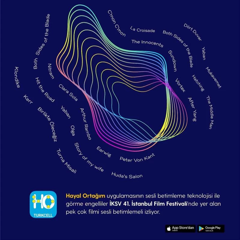 Turkcell, Hayal Ortağım uygulaması kapsamında, 41. İstanbul Film Festivali’ndeki 27 filmin sesli betimlemesini görme engelli sinemaseverlerle buluşturacak. Festivalde beyazperdeye taşınan önemli yapıtlar, sesli betimleme teknolojisi sayesinde sinema salonlarında takip edilebilecek.