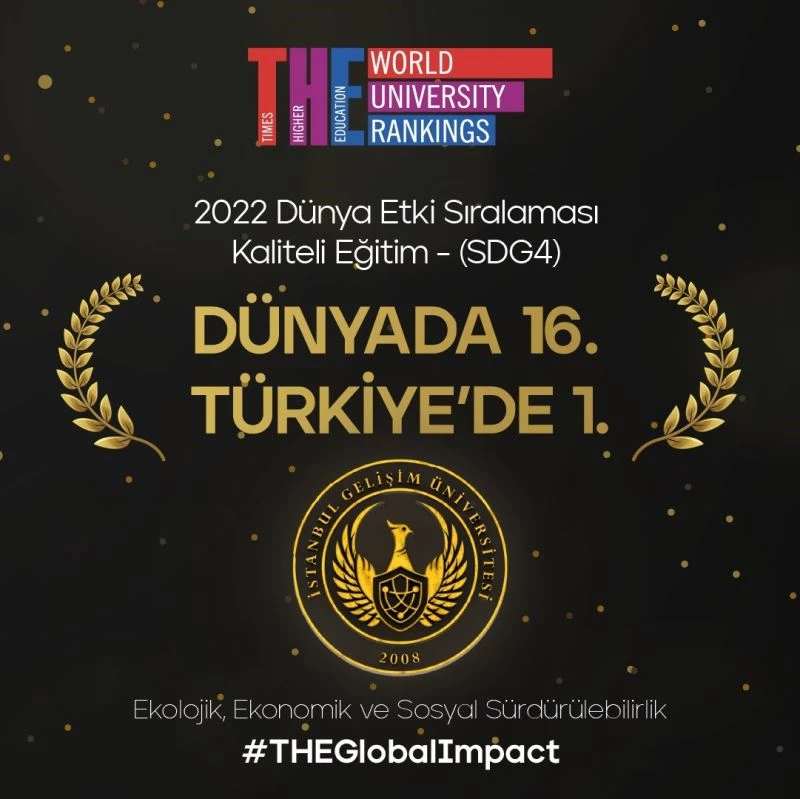İngiltere merkezli, dünyanın öncü yükseköğretim derecelendirme kuruluşu Times Higher Education (THE) 2022 sıralamasında yer alan, 1406 üniversitenin başvuru yaptığı listede İstanbul Gelişim Üniversitesi’nin (İGÜ) başarısı Birleşmiş Milletler Sürdürülebilir Kalkınma Hedefleri doğrultusunda beş farklı kategoride derecelendirildi. Etki Sıralaması (Impact Ranking) 2022 listesinde “Kaliteli Eğitim” kategorisinde 1180 dünya üniversitesi arasında İstanbul Gelişim Üniversitesi (İGÜ) derecesini 24’üncü sıradan 16’ncı sıraya yükseltirken, Türkiye üniversiteleri arasında 1’inciliğini korumaya devam etti.