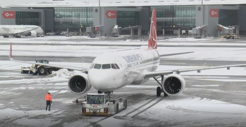 İstanbul Havalimanı’nda seferler, kar yağışına rağmen aksamadan devam ediyor.