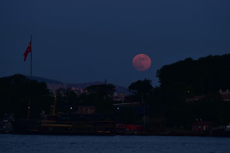 Bugün akşam saatlerinde gerçekleşen Ay tutulması sırasında ve öncesinde İstanbul’da kartpostallık görüntüler oluşturdu.