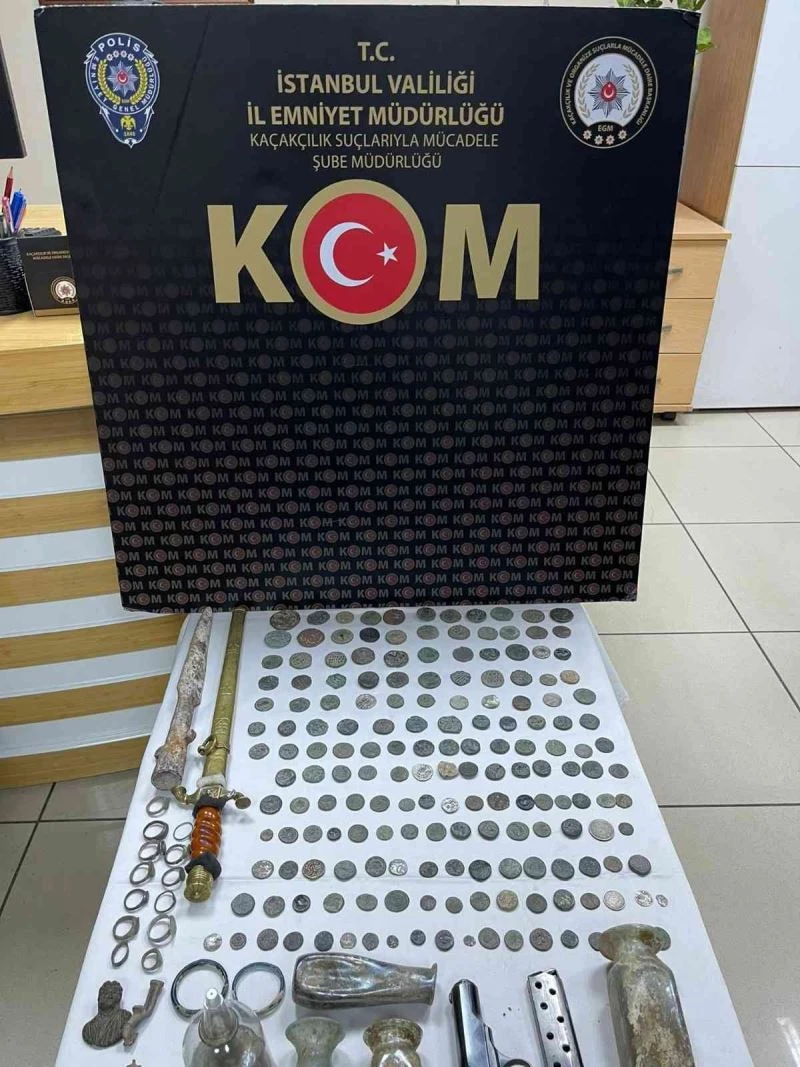 İstanbul’da kültür eserleri kaçakçılarına yönelik düzenlenen operasyonda, mızrak ucu, haç ve sikkelerin de aralarında olduğu çok sayıda tarihi eserin ele geçirildiği belirtildi. Antika eserlerin ticaretini yaptıkları iddia edilen 2 şüphelinin gözaltına alındığı duyuruldu.