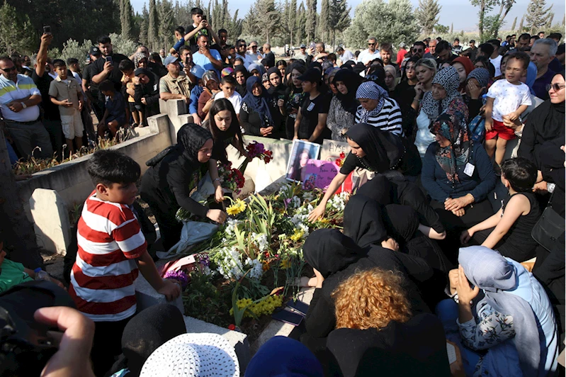 Mezara karanfil bırakıp dua eden katılımcılar, burada Tokyaz'ın ailesine başsağlığı diledi.